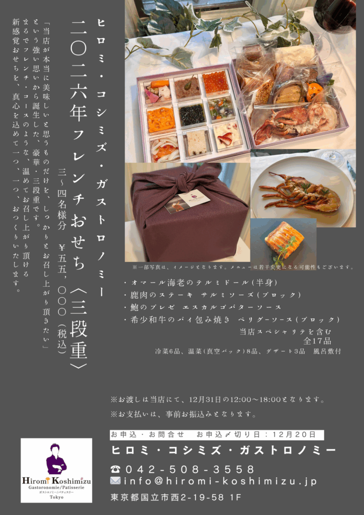 誠に恐れ入りますが、年内分のご予約・ご注文受付はすでに終了しております。